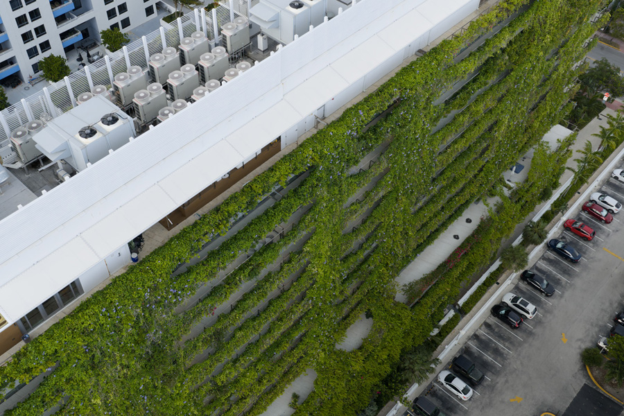 Environmental Impact: The north and south façades function as natural air filters, creating biodiverse landscapes that passively clean Miami’s urban air through layers of flowers, plants, and leaves.