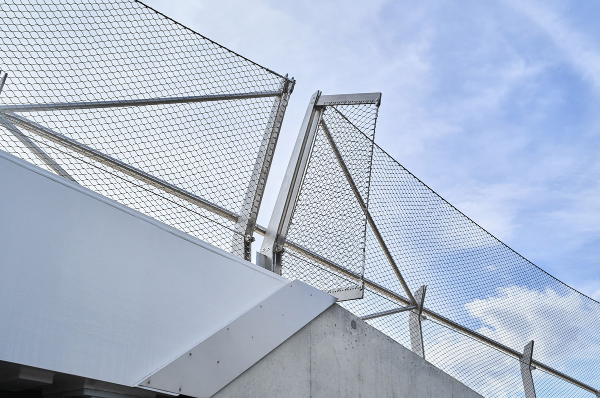 When code requires protection above an existing parapet. Webnet can be integrated with existing metal structures without requiring a full parapet redesign. The system attaches to surround ropes anchored to the structural frame — a relatively low-impact retrofit path.